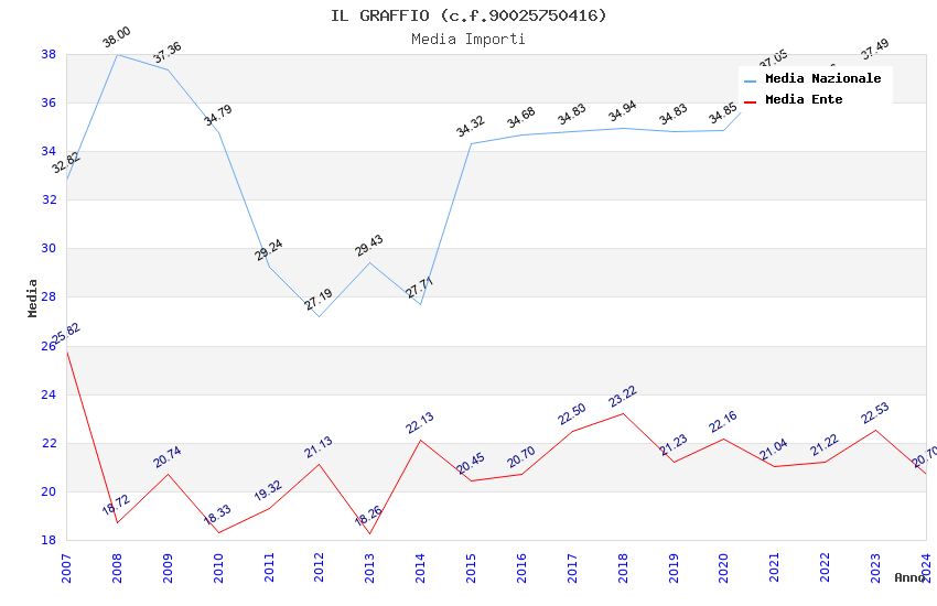 | Anno | Firme | Importi | Media | Naz. | Reg. | Prov. | Comu. |