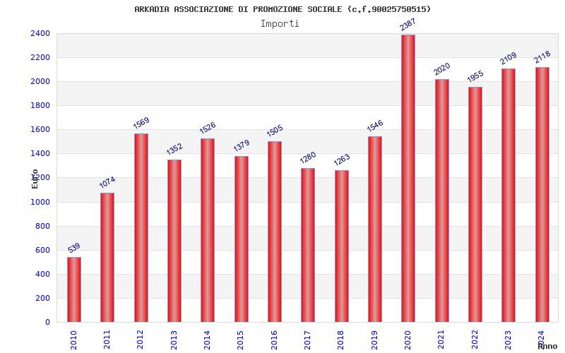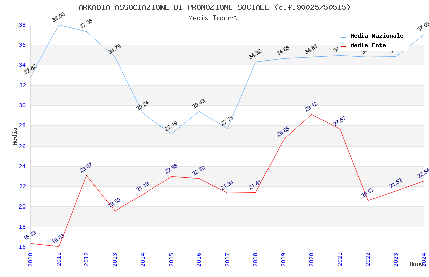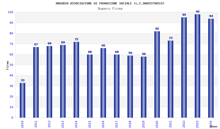 | Anno | Firme | Importi | Media | Naz. | Reg. | Prov. | Comu. |