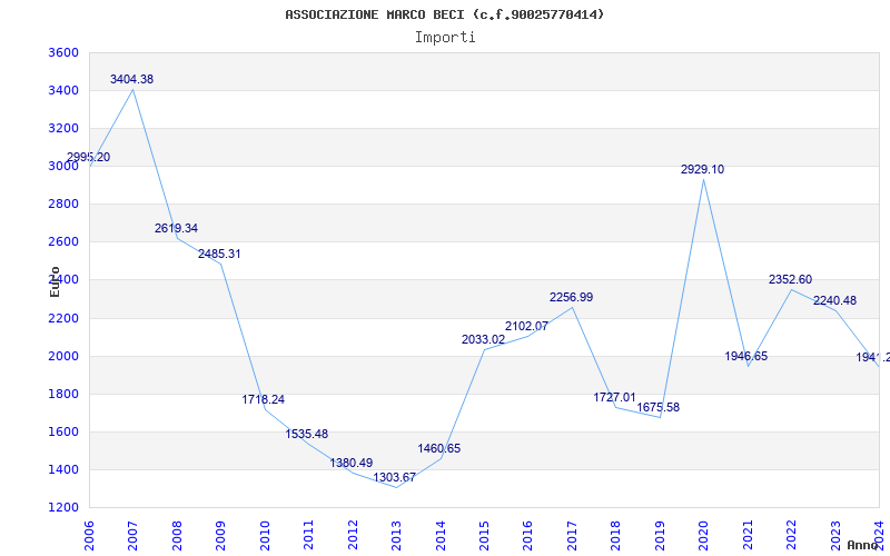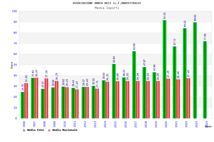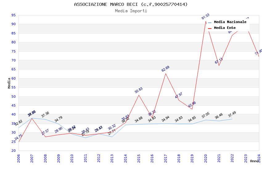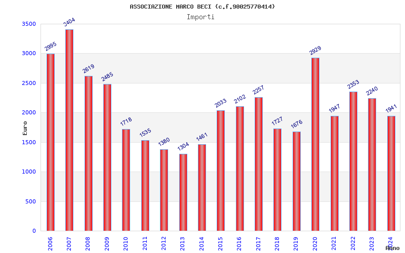 | Anno | Firme | Importi | Media | Naz. | Reg. | Prov. | Comu. |