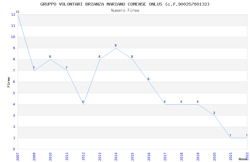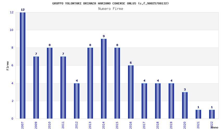 | Anno | Firme | Importi | Media | Naz. | Reg. | Prov. | Comu. |
