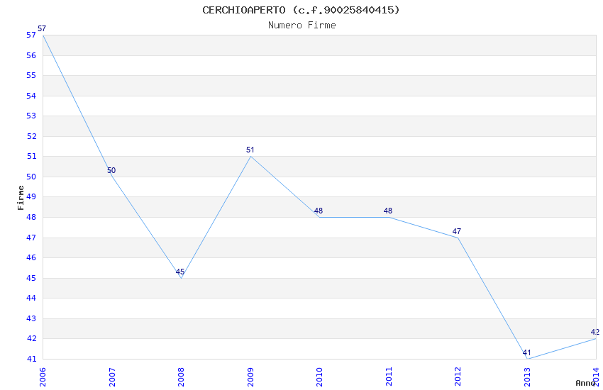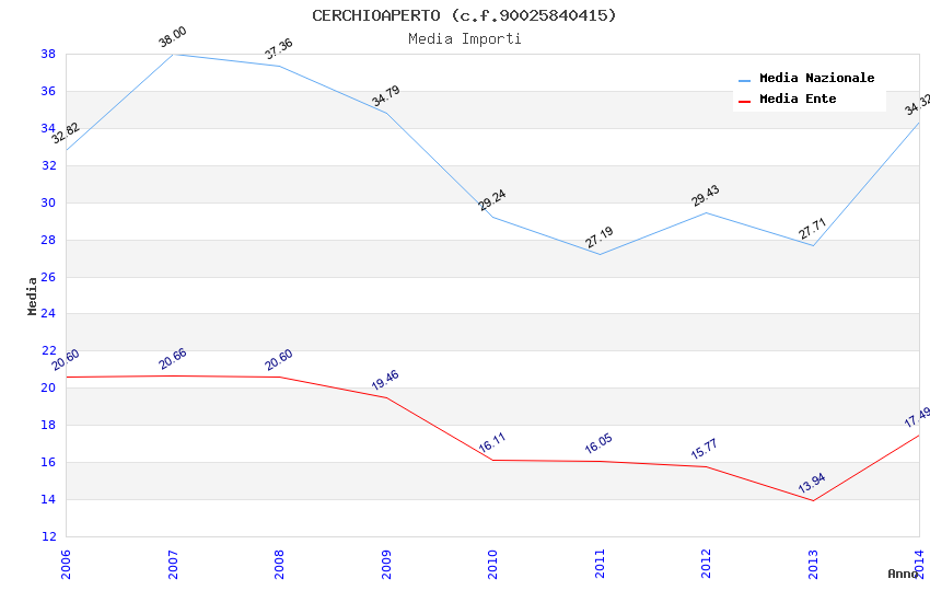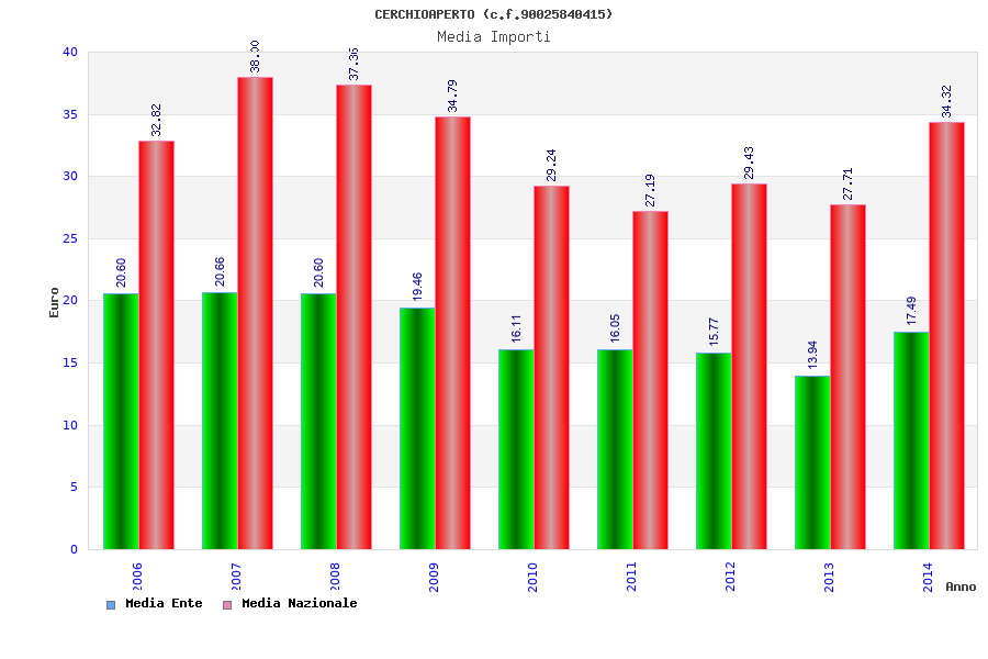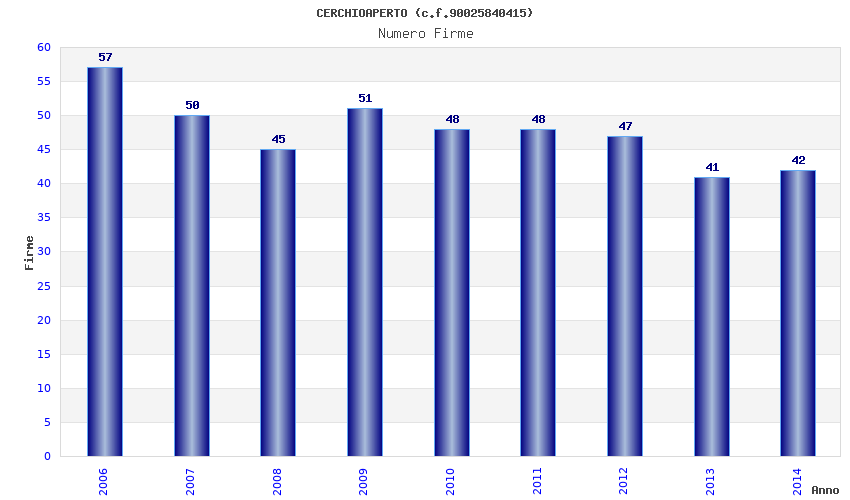 | Anno | Firme | Importi | Media | Naz. | Reg. | Prov. | Comu. |