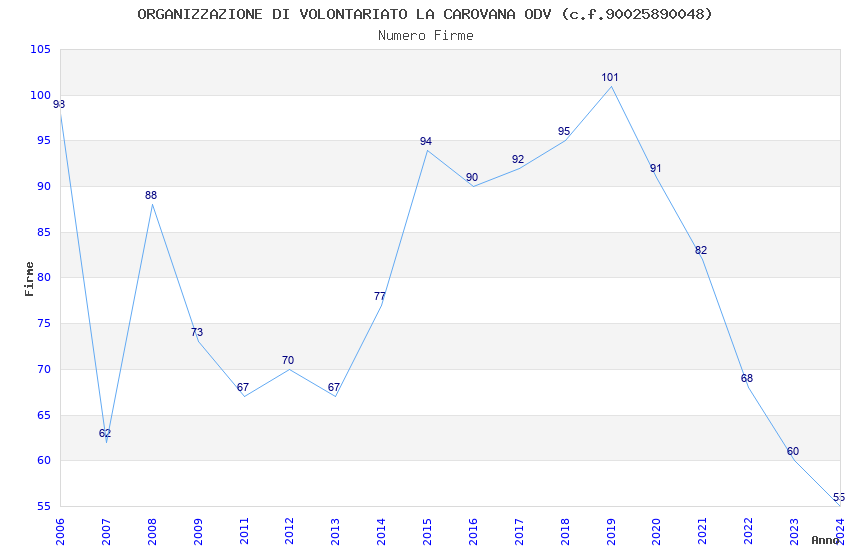 | 2019 | 101 | 2.964,88 | 29,36 | 17.859 | 1.350 | 215 | 18 |