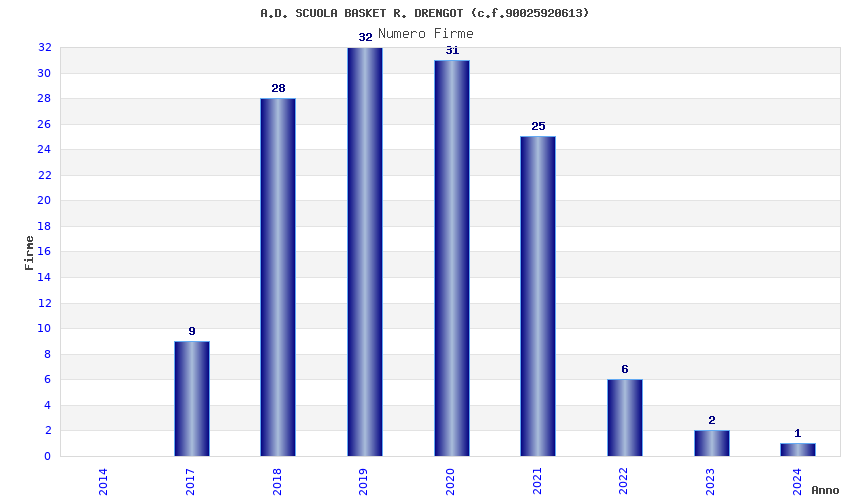 | Anno | Firme | Importi | Media | Naz. | Reg. | Prov. | Comu. |