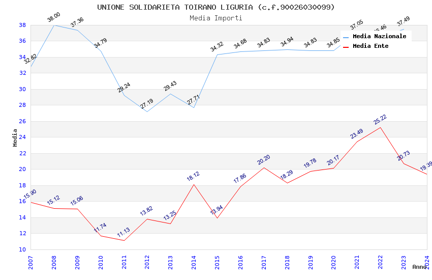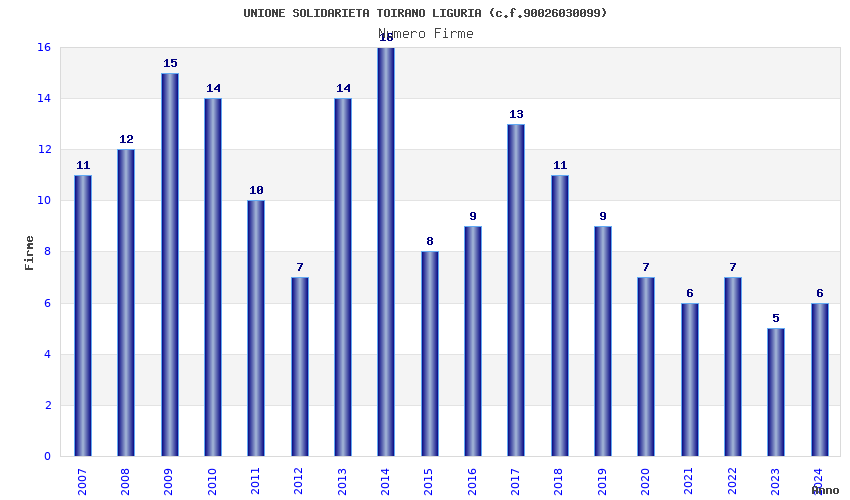 | Anno | Firme | Importi | Media | Naz. | Reg. | Prov. | Comu. |