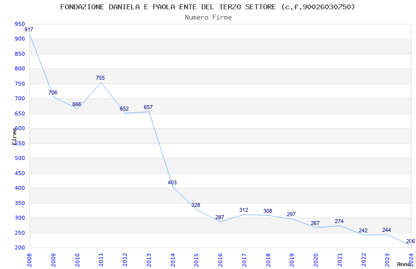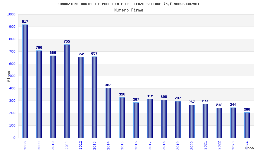 | Anno | Firme | Importi | Media | Naz. | Reg. | Prov. | Comu. |