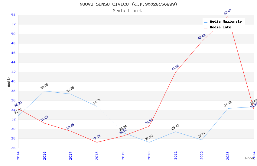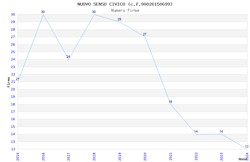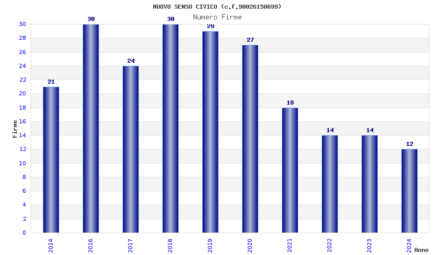 | Anno | Firme | Importi | Media | Naz. | Reg. | Prov. | Comu. |