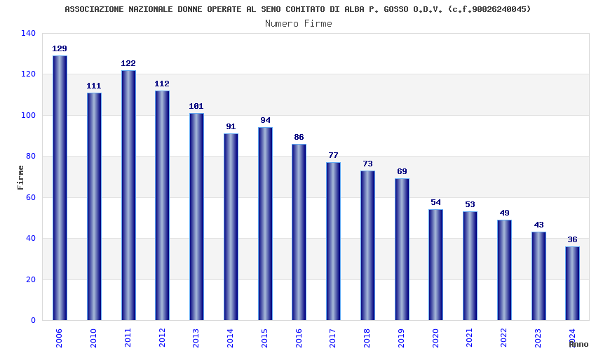 | Anno | Firme | Importi | Media | Naz. | Reg. | Prov. | Comu. |