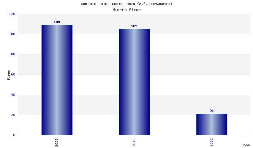 | Anno | Firme | Importi | Media | Naz. | Reg. | Prov. | Comu. |