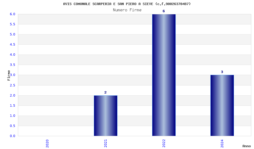 | Anno | Firme | Importi | Media | Naz. | Reg. | Prov. | Comu. |
