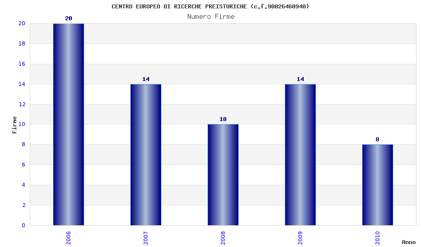 | Anno | Firme | Importi | Media | Naz. | Reg. | Prov. | Comu. |
