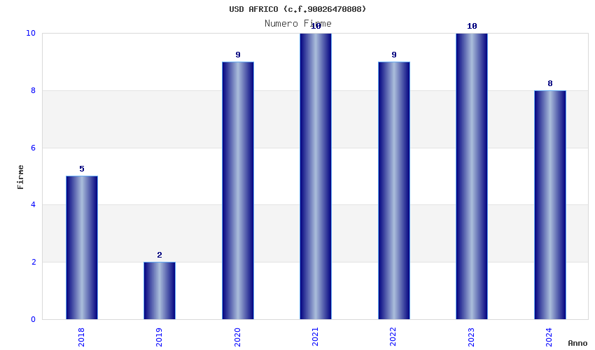 | Anno | Firme | Importi | Media | Naz. | Reg. | Prov. | Comu. |