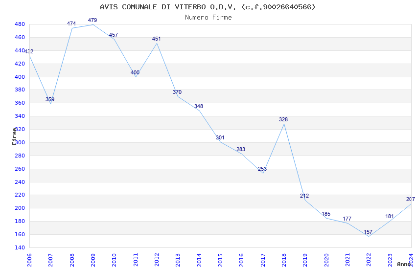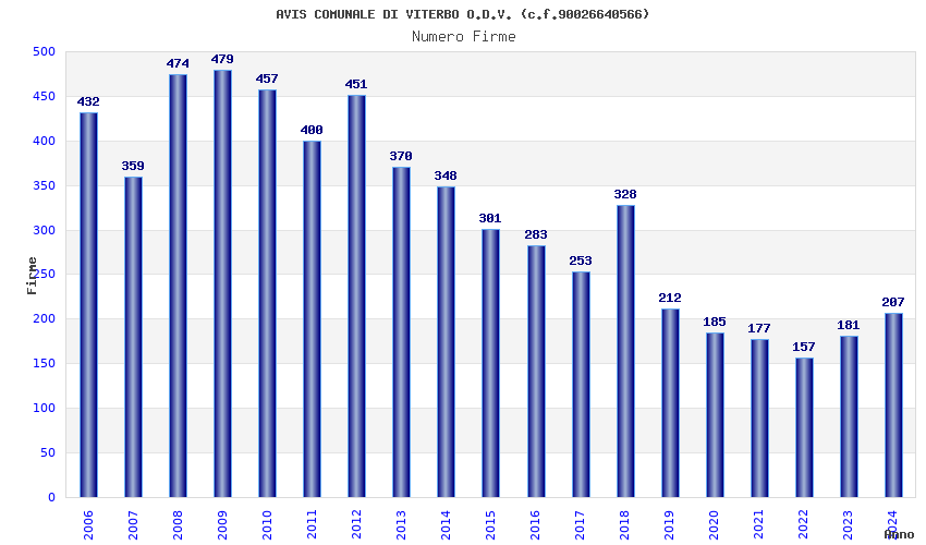 | Anno | Firme | Importi | Media | Naz. | Reg. | Prov. | Comu. |