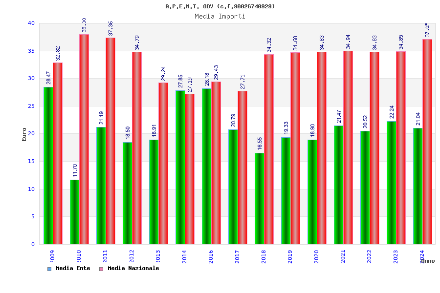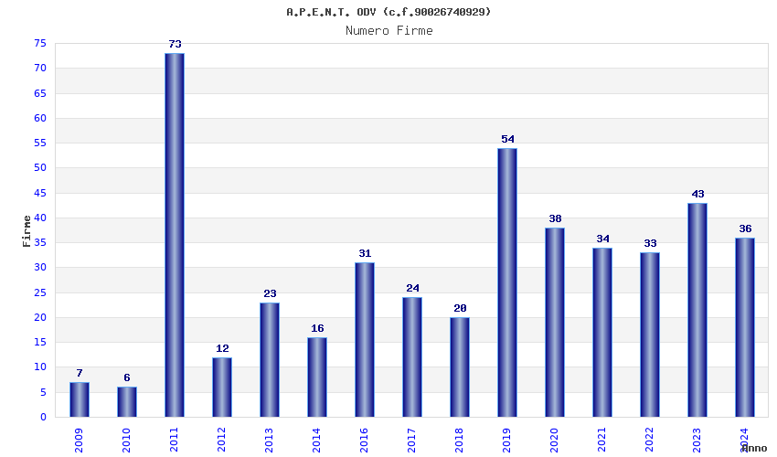 | Anno | Firme | Importi | Media | Naz. | Reg. | Prov. | Comu. |