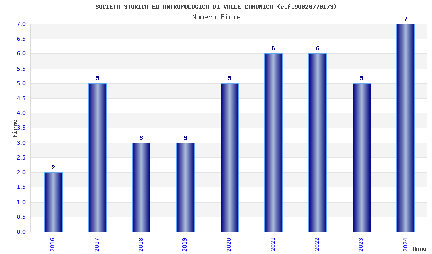 | Anno | Firme | Importi | Media | Naz. | Reg. | Prov. | Comu. |