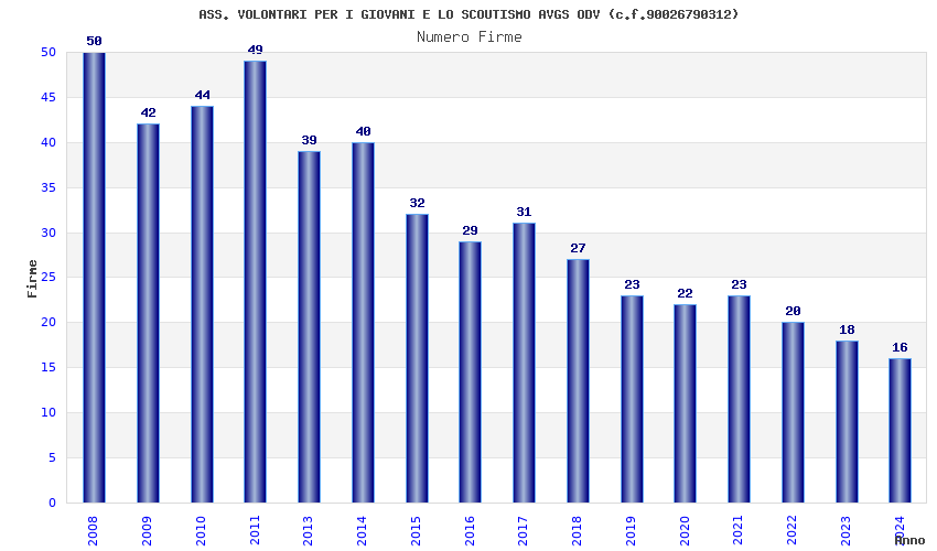 | 2008 | 50 | 1.607,27 | 32,15 | 16.404 | 367 | 44 | 9 |