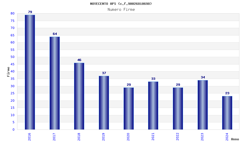 | Anno | Firme | Importi | Media | Naz. | Reg. | Prov. | Comu. |