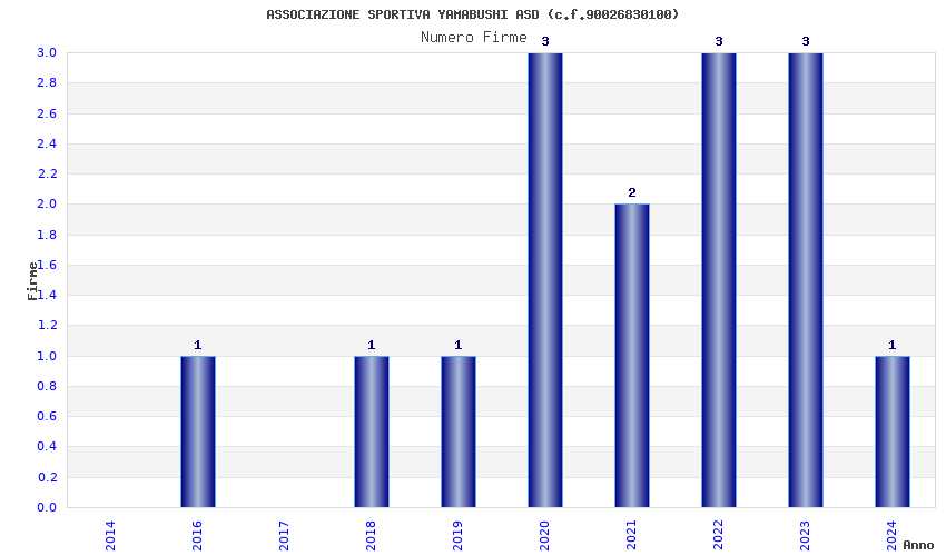 | Anno | Firme | Importi | Media | Naz. | Reg. | Prov. | Comu. |