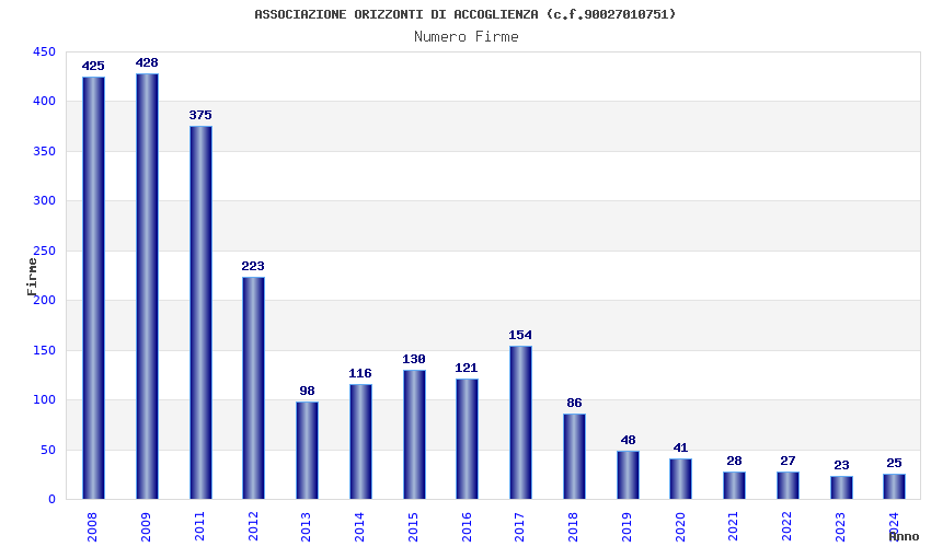 | Anno | Firme | Importi | Media | Naz. | Reg. | Prov. | Comu. |