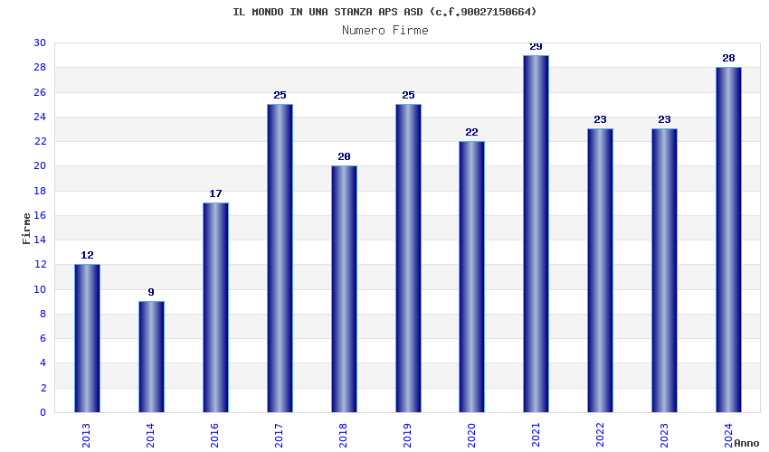 | Anno | Firme | Importi | Media | Naz. | Reg. | Prov. | Comu. |