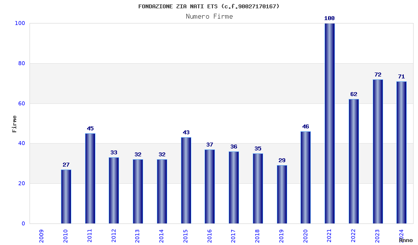 | Anno | Firme | Importi | Media | Naz. | Reg. | Prov. | Comu. |