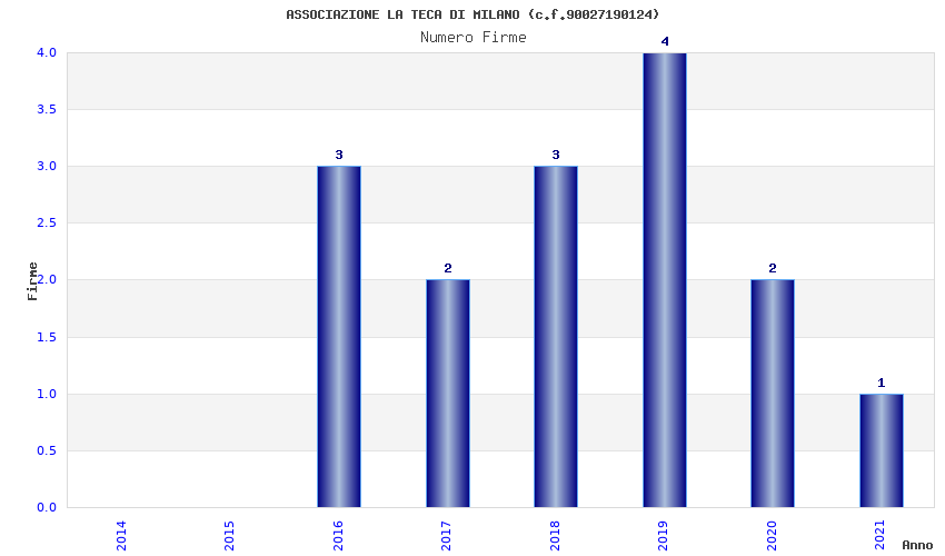 | Anno | Firme | Importi | Media | Naz. | Reg. | Prov. | Comu. |
