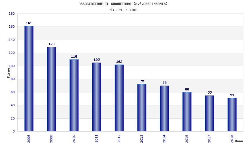 | Anno | Firme | Importi | Media | Naz. | Reg. | Prov. | Comu. |