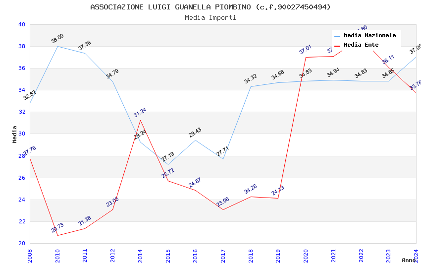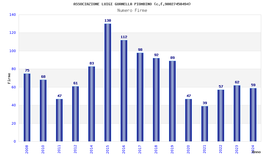 | Anno | Firme | Importi | Media | Naz. | Reg. | Prov. | Comu. |