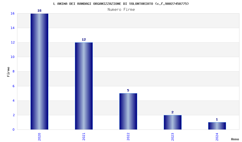| Anno | Firme | Importi | Media | Naz. | Reg. | Prov. | Comu. |