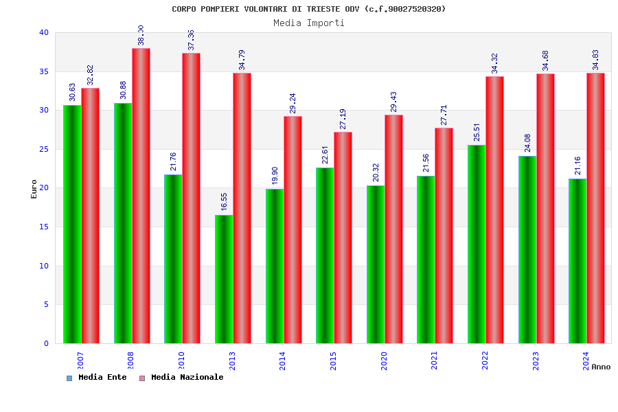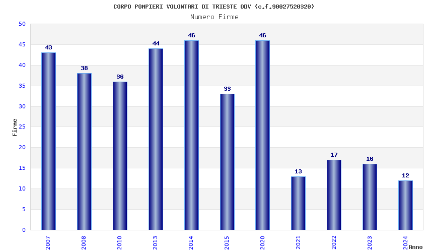 | Anno | Firme | Importi | Media | Naz. | Reg. | Prov. | Comu. |