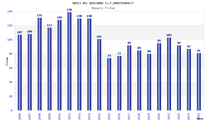 | Anno | Firme | Importi | Media | Naz. | Reg. | Prov. | Comu. |