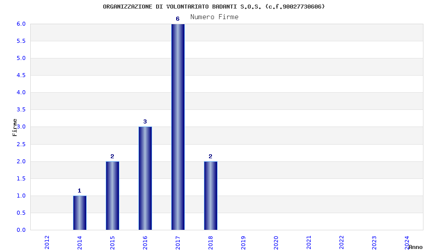 | Anno | Firme | Importi | Media | Naz. | Reg. | Prov. | Comu. |