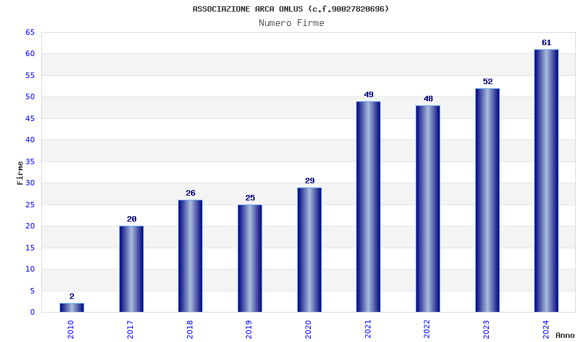 | Anno | Firme | Importi | Media | Naz. | Reg. | Prov. | Comu. |