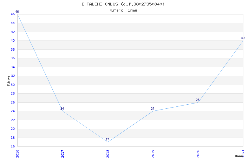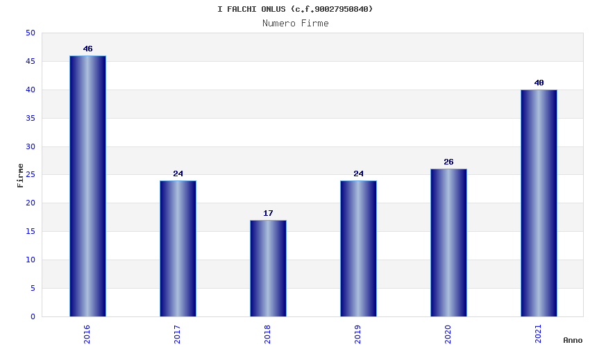 | Anno | Firme | Importi | Media | Naz. | Reg. | Prov. | Comu. |