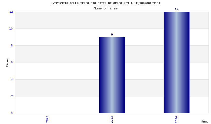 | Anno | Firme | Importi | Media | Naz. | Reg. | Prov. | Comu. |