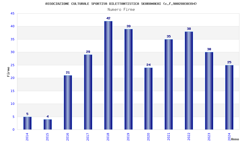 | Anno | Firme | Importi | Media | Naz. | Reg. | Prov. | Comu. |