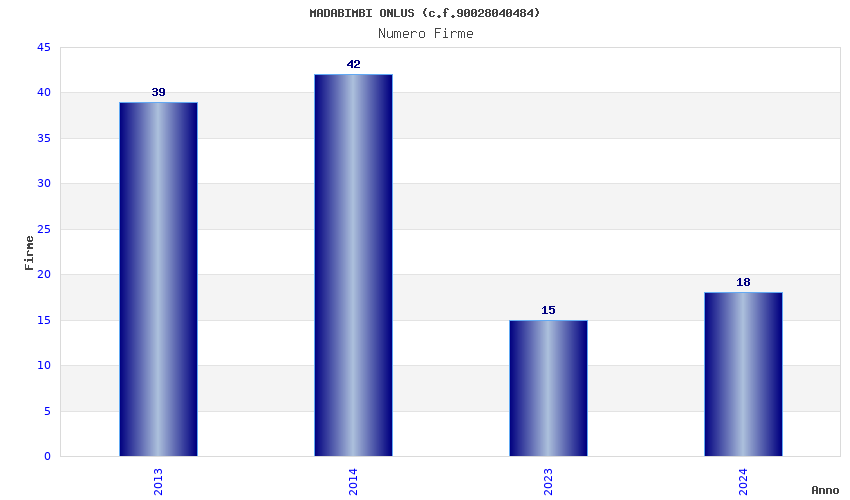 | Anno | Firme | Importi | Media | Naz. | Reg. | Prov. | Comu. |