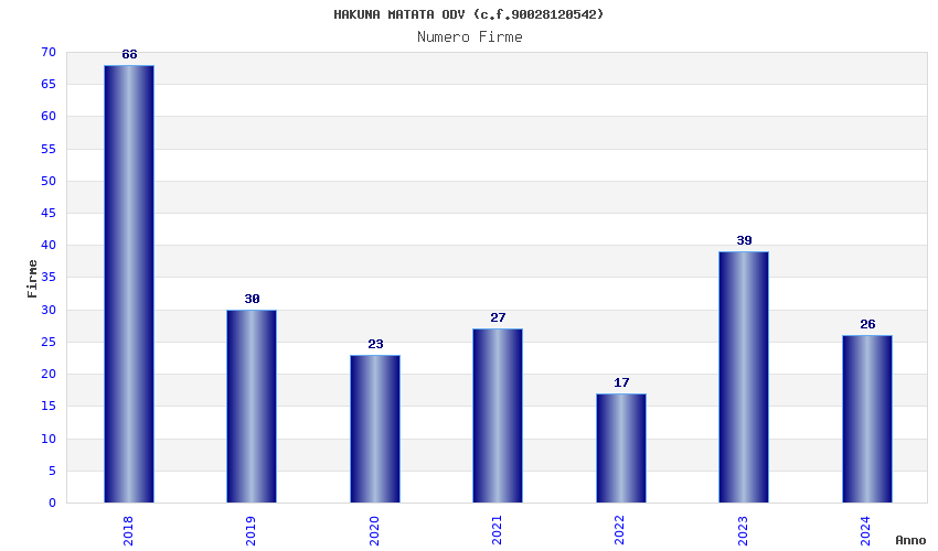 | 2018 | 68 | 2.262,00 | 33,26 | 21.707 | 304 | 246 | 15 |