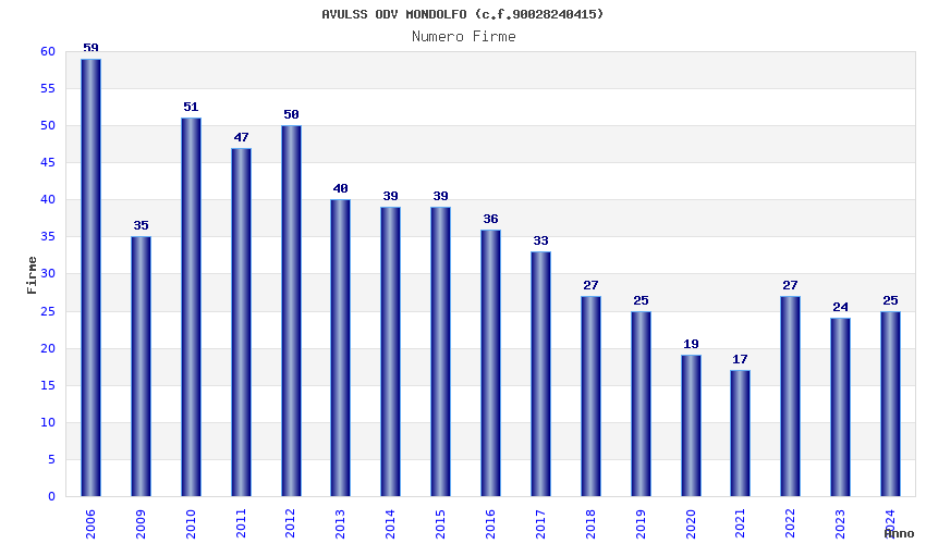 | Anno | Firme | Importi | Media | Naz. | Reg. | Prov. | Comu. |
