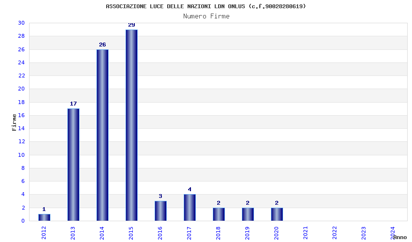 | Anno | Firme | Importi | Media | Naz. | Reg. | Prov. | Comu. |
