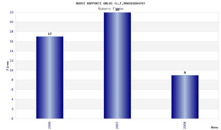 | Anno | Firme | Importi | Media | Naz. | Reg. | Prov. | Comu. |
