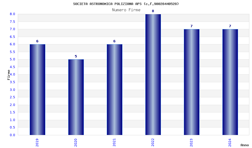 | Anno | Firme | Importi | Media | Naz. | Reg. | Prov. | Comu. |