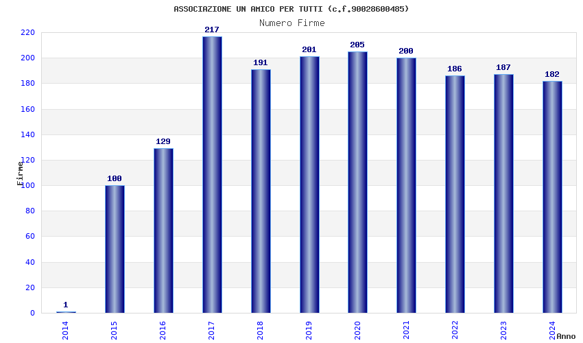 | Anno | Firme | Importi | Media | Naz. | Reg. | Prov. | Comu. |