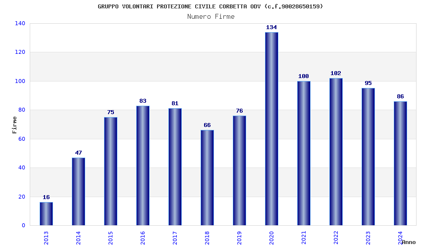 | Anno | Firme | Importi | Media | Naz. | Reg. | Prov. | Comu. |