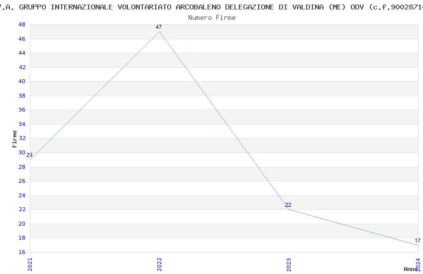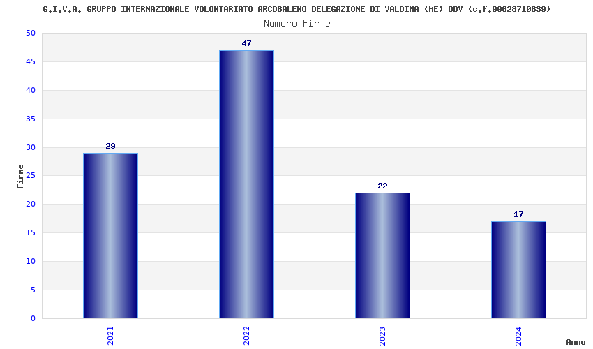 | Anno | Firme | Importi | Media | Naz. | Reg. | Prov. | Comu. |