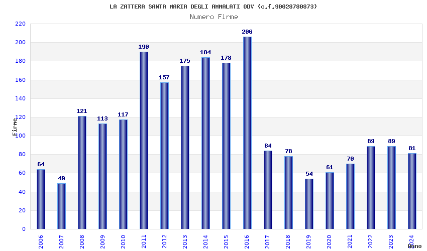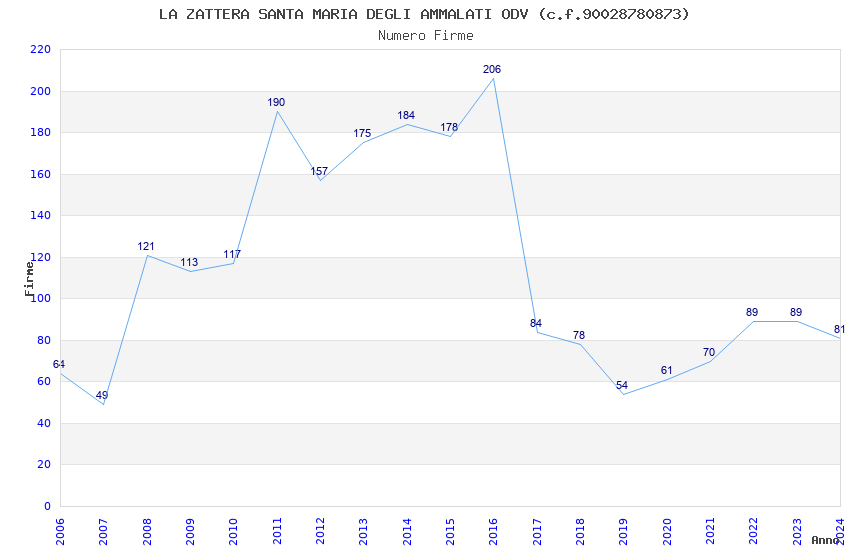 | 2016 | 206 | 5.200,38 | 25,24 | 10.539 | 589 | 108 | 7 |