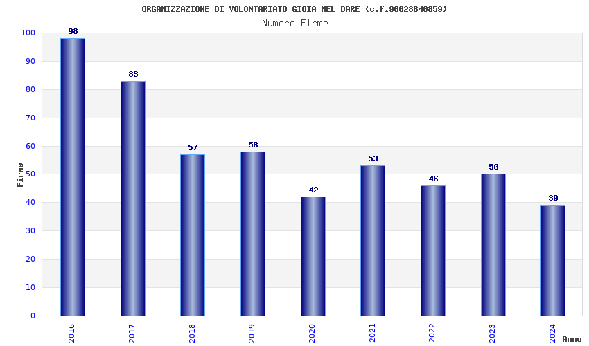 | Anno | Firme | Importi | Media | Naz. | Reg. | Prov. | Comu. |