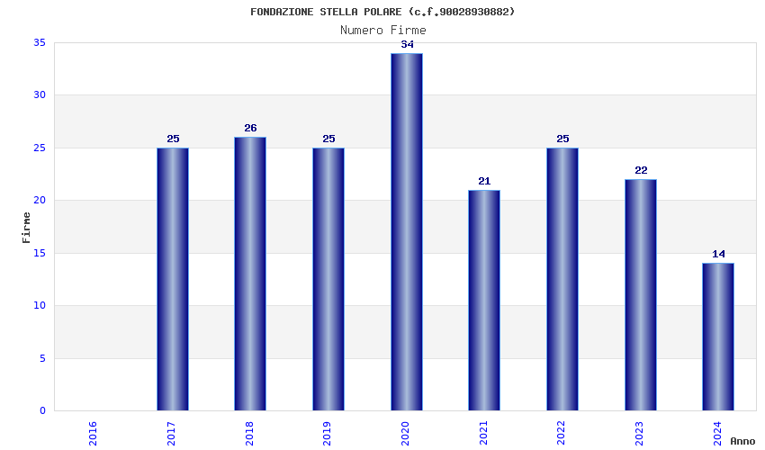 | Anno | Firme | Importi | Media | Naz. | Reg. | Prov. | Comu. |