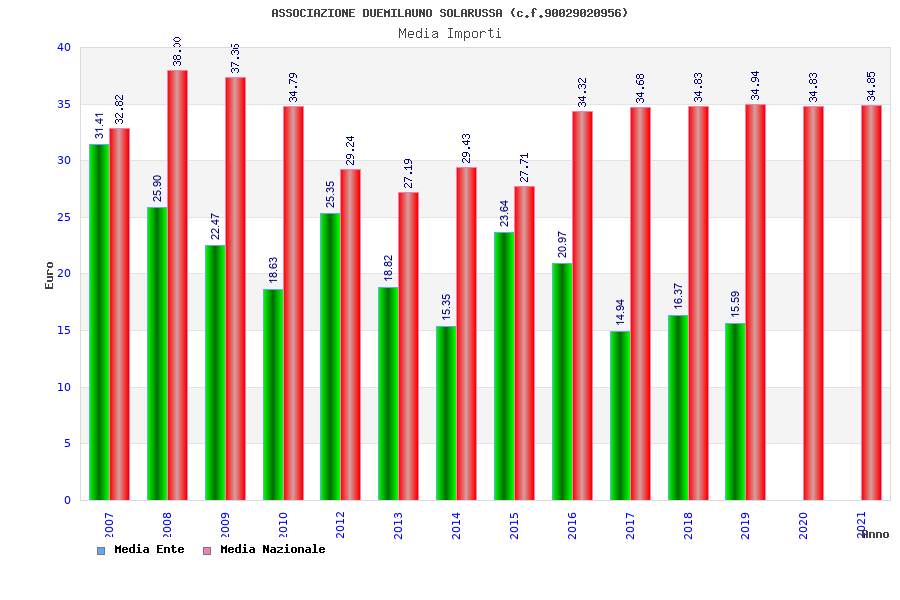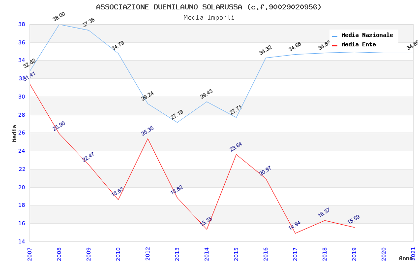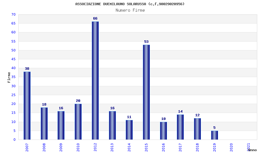 | Anno | Firme | Importi | Media | Naz. | Reg. | Prov. | Comu. |