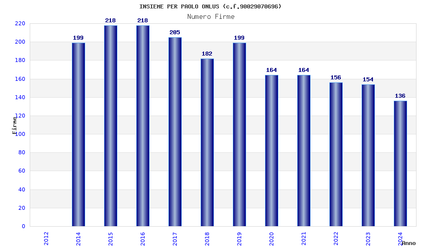 | Anno | Firme | Importi | Media | Naz. | Reg. | Prov. | Comu. |