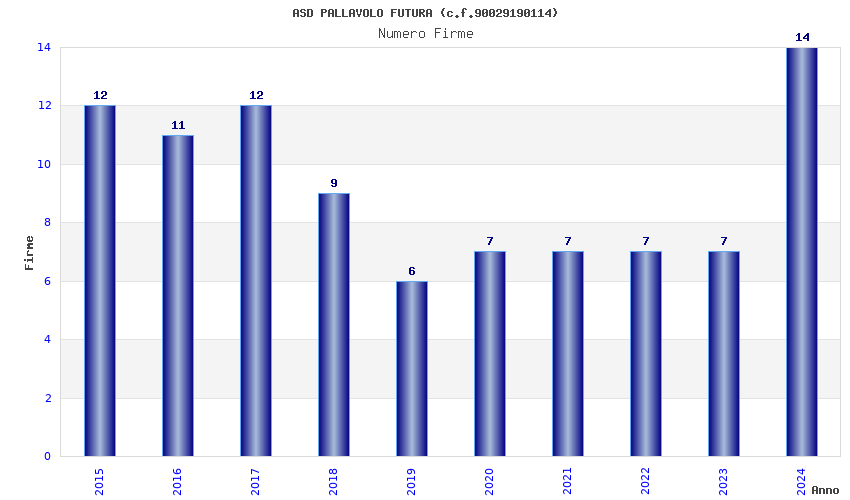 | Anno | Firme | Importi | Media | Naz. | Reg. | Prov. | Comu. |